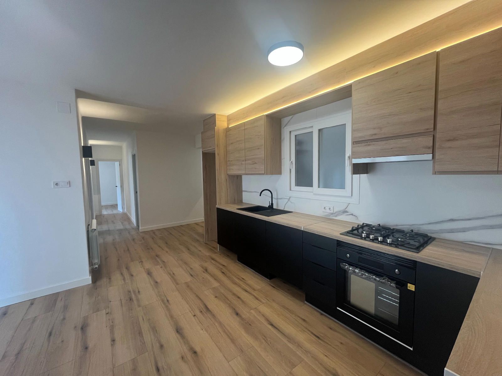 El salón-comedor es amplio y muy confortable, con vistas a la avenida que aportan luz y una agradable sensación de amplitud. La cocina es moderna, práctica y con un diseño muy especial que la convierte en un espacio agradable para el día a día.
